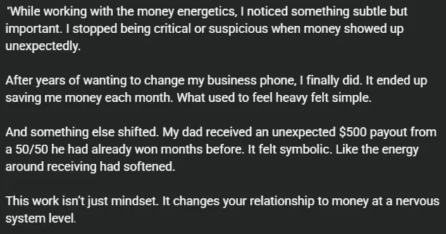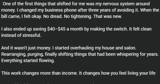 Over the years, your guidance and the space you hold have changed how I operate. The growth has been profound but also steady. I carry what I’ve learned into my daily decisions. It’s not just insight. It’s how I live now.”